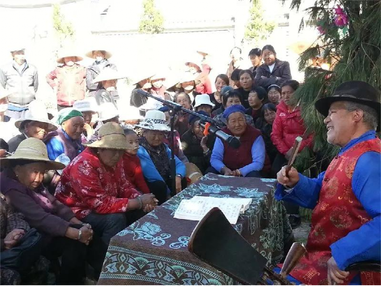 楊興廷說道,1952年的暑假是他人生的轉折點。那年他14歲,就讀于大理一中初中部。當時中央派西南地區(qū)的文化工作隊下來學習大本曲,那天有十幾個人圍在他父親身邊,聽他父親講大本曲,十分認真。看到這些學員語言不通,學起大本曲來卻一絲不茍,有的經(jīng)常廢寢忘食,他們不畏艱辛的精神深深打動了他。