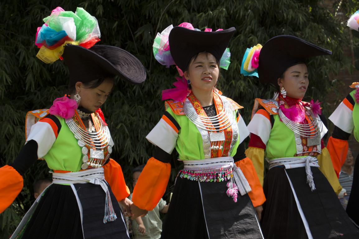 批林村的傳統(tǒng)蘆笙舞,充滿力量、優(yōu)雅。自古以來,蘆笙吹奏,都要配合舞蹈,邊吹邊舞,舞者跟隨蘆笙曲或彎膝跳步,或斜跨踢步,舞蹈動作雖然簡單,卻能完美地表現(xiàn)蘆笙的節(jié)奏。