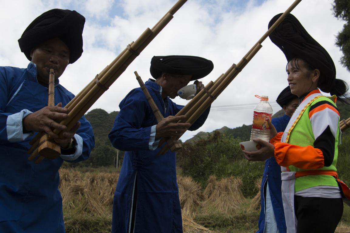 批林村蘆笙曲不限定地點,只要蘆笙響起,田間地頭,都可以起跳。蘆笙曲曲調(diào)深沉而又悠揚,配著藍天白云,稻草風(fēng)香,整體舞蹈與天地相合,令人沉浸其中。