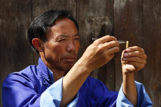 最難的是敲打簧片、割簧片、校單音、校和音這四個程序,最細致,最需要掌握的就是割簧片。把竹管的聲音和簧片的聲音全部調(diào)成一致,然后還要校正聲音。把單音校好以后還有雙管的,如果不把聲音校準(zhǔn),雙管就會和不起來,吹起來也不好聽,就不能用。
