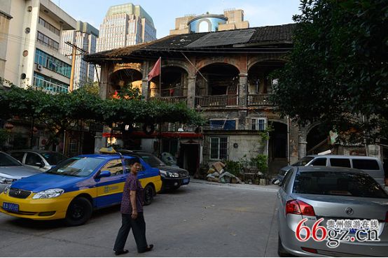 在中華北路主大街中段,穿過一個(gè)百米左右的小巷子,沿著一個(gè)小斜坡往上,盡頭一個(gè)寬敞的大院子就是“毛公館”。但是比起貴陽現(xiàn)存的其他民國建筑,“毛公館”顯得殘破不堪。如今的大院已看不出任何歷史文化古跡的痕跡,“毛公館”周邊已經(jīng)被兩個(gè)小高層建筑包圍,大院邊是一棟富麗堂皇的銀行辦公大樓和一棟證券大樓,相比起來,“毛公館”的存在顯得與這個(gè)城市格格不入。