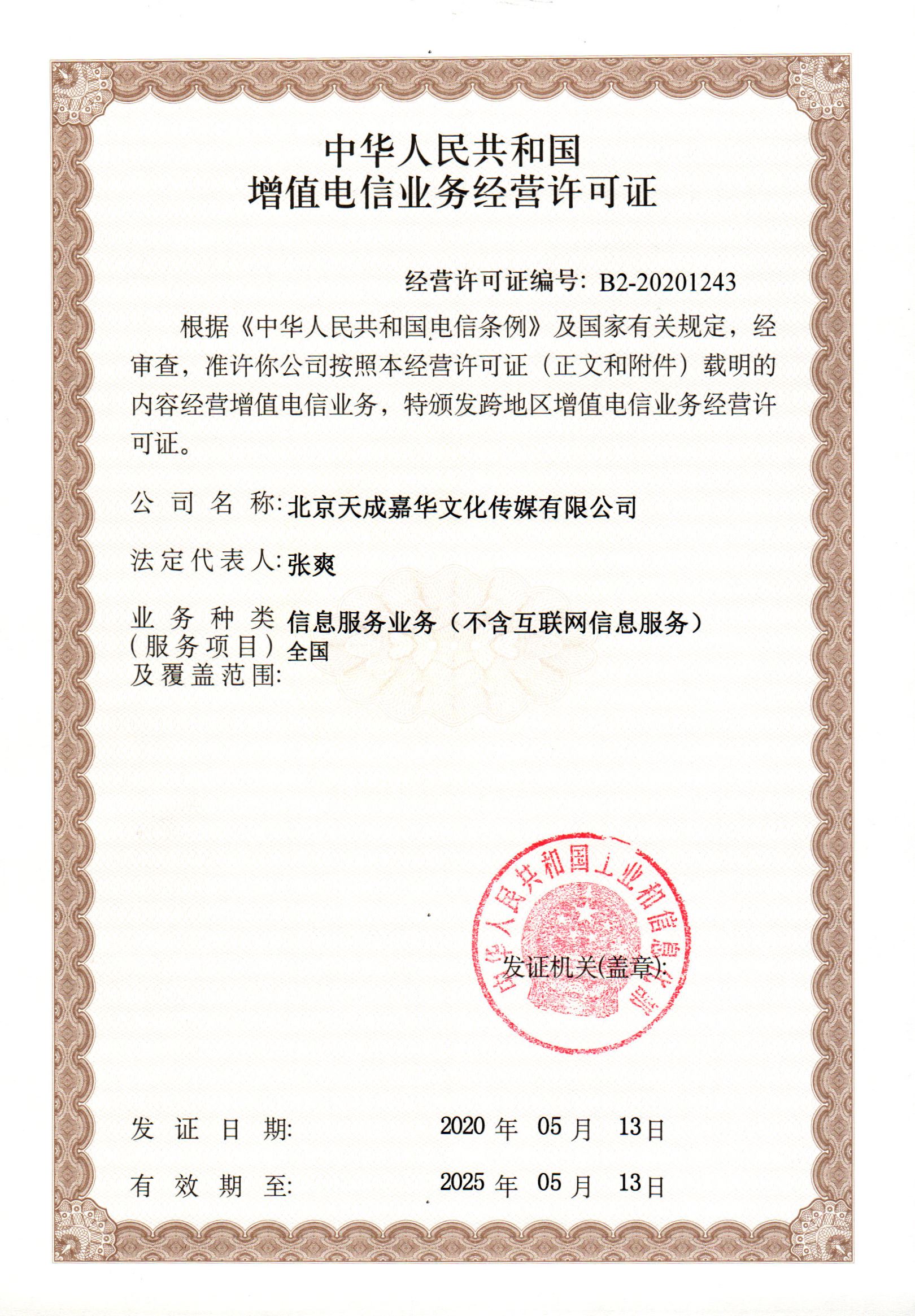 增值電信業(yè)務經(jīng)營許可證B2-20201315