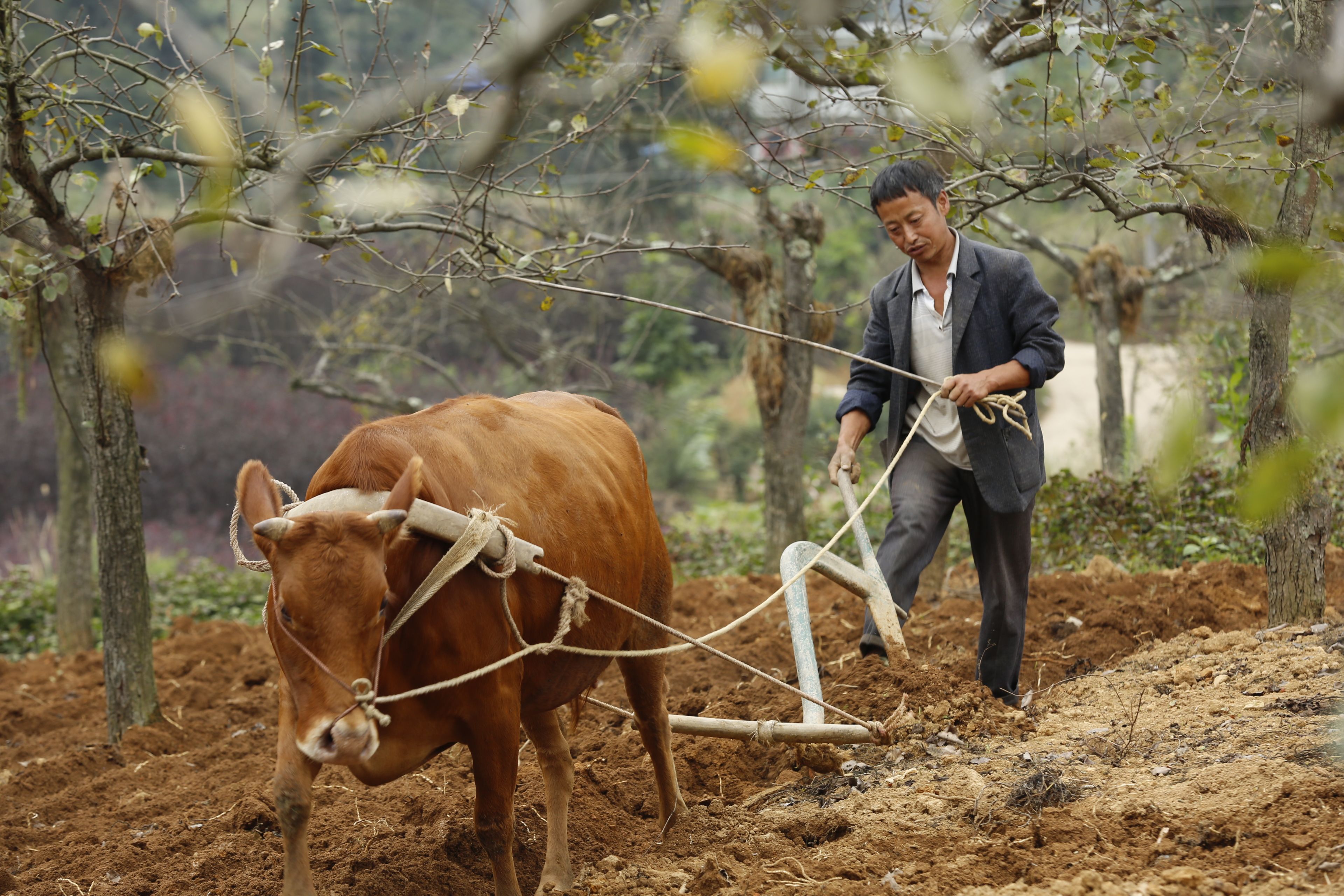 圖片說明:貴州貴陽苗族農(nóng)作物種植-牛耕田